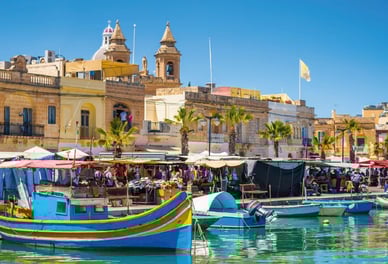 Marsaxlokk zu Besuch und haben Zeit für einen Bummel über den Markt. Ein beliebtes Fotomotiv sind die bunt bemalten Fischerboote, die sogenannten ,,Luzzi". Abendessen und Übernachtung im Hotel.