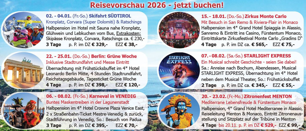 Es sind viele Städtereisen und schöne Fahrten in Planung - seien Sie gespannt!