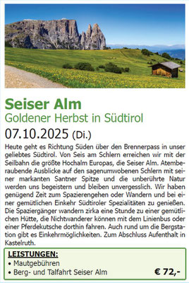 11.10. - 12.10.2025 2 Tage Genussreise ins Vinschgau *DURCHFÜHRUNGSGARANTIE*